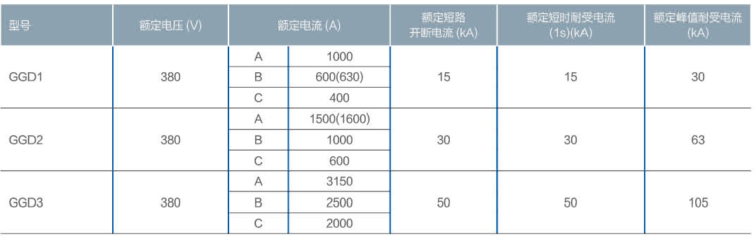 GGD 型交流低压配电柜是根据能源部主管上级与广大电力用户及设计部门的要求本着安全、经济、合理、可靠的原则设计的新型低压配电柜。产品具有分断能力高、动热稳定性好、电气方案灵活、组合方便、系列性、实用性强、结构新颖、防护等级高等特点,可作为低压成套开关设备的更新换代产品使用。